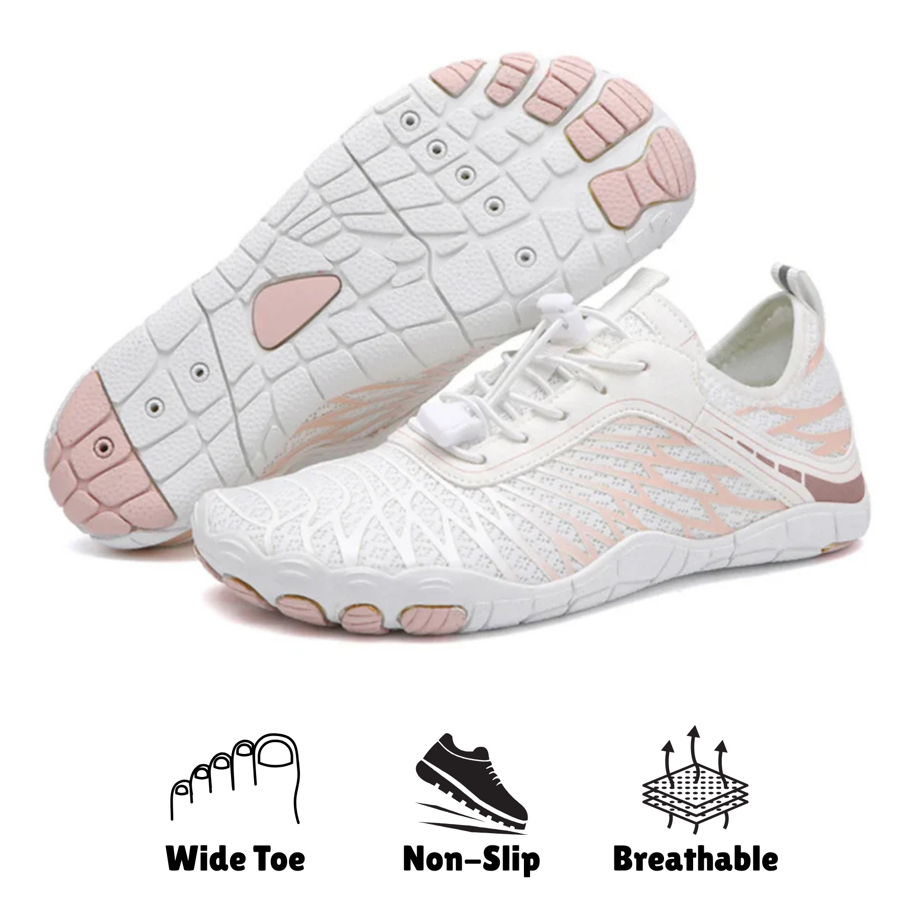 EarthStride™ barefoot shoes are designed to bring your feet back to life. With a wide toe box, lightweight build, and flexible sole, they let your feet spread, flex, and move naturally — just the way they were meant to. Say goodbye to stiff, restrictive footwear and hello to freedom, comfort, and strength in every step.